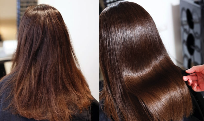 Deep conditioning treatment following haircut service for nourished, styled hair.